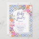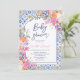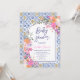 Nosso padrão de azulejo de cerâmica azul inspirado pela Itália-Mediterrâneo, aliado a alegres ilustrações botânicas de flores primavera cor-de-rosa coloridas, cria um novo e moderno chá de fraldas neutro de gênero, convite que certamente impressionará! Apresentando uma forma moderna de arco e um roteiro elegante de pincel. Imprima os seus convidados com esta tendência e um design único que fará com que todos falem.