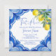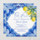 Blue Maiolica azulejos limões chá de panela italiano editável modelo instantâneo, convites de chá de panela de chá de panela mediterrâneos