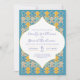 Azulejo moderno marroquino azul, amarelo e ouro, convite personalizado para casamento da arte marroquina. Este produto pode ser facilmente personalizado. Se precisar de ajuda para a personalização do produto ou se precisar de produtos correspondentes, por favor contacte-me através do Zazzle.