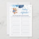 Adquira este cartão e desfrute do jogo Baby Alphabet ABC de alta qualidade para o seu evento! Balões Azuis e Prateados, Urso Teddy. Atividades de chá de fraldas! Adivinha o jogo.