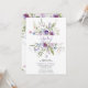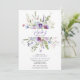 Este convite de chá de bebê moderno apresenta aquarela azul claro e violeta, flores silvestres rosa pálido, folhas verdes e galhos.