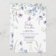 Esta moda Bebê em convites florescentes apresenta cor d'água azul clara e violeta flores silvestres, folhas verdes. Aproveite!