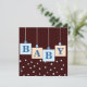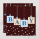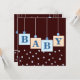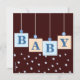 Avise aos seus convidados que um bebê está a caminho com este design de um lindo bloco de bebê em azul e castanho de chocolate.