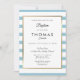 Batismo com listras azuis de bebê ou convite batizante com uma elegante borda de folha de ouro que enquadra seus detalhes especiais de celebração definidos na tipografia moderna. Projetado por Thisnotme©