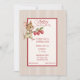 Este convite para o chá do bebê vai agradar a todos. Um ratinho fofo correndo no carregando de convite um ramo de framboesas adicionando um elemento vermelho à imagem. Um fundo listrado, com um quadro de vermelho com todos os detalhes do texto em vermelho.