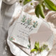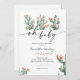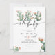 Caligrafia elegante e convite para chá de fraldas de cacto floral com aquarela.