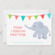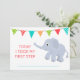 A "Colorful Flag Bunting" e um elefante bebê aprendendo a ficar é o pano de fundo para este cartão de ponto de referência para bebês. Este cartão diz "Hoje dei o meu primeiro passo", mas as palavras podem ser alteradas. Há espaço para você inserir a data do evento de marco no cartão