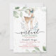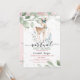 Convite de chá de fraldas de menina virtual exclusivo com veado, estrelas e folhas de árvore de bebê aquarela.