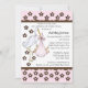 Convite Para Chá de fraldas De Tempestade De Garota Bonita. Apresentando uma adorável cegonha com um feixe de meninas com um fundo de flores rosa e marrom. Correspondendo a você, obrigado que você tenha adesivos e selos de chá de fraldas também disponíveis.