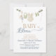 This “Baby in Bloom” invitation was designed to capture the tender feeling of preparing for a new arrival. With soft watercolor greenery, dusty blue lettering, and a sweet baby clothesline illustration, the design feels calm, elegant, and perfect for a garden-inspired baby shower celebration.