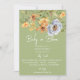Sage green Baby in bloom meadow colorful dusty blue flowers baby shower wildflowers invitation template instant download. Watercolor wildflowers mixed colors dusty blue for a garden flowers themed baby shower invitation.