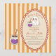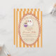 a Baby is brewing cute ghost Halloween baby shower invitation cards template instant download, retro orange stripes Halloween baby shower invitations, wavy hand drawn border Halloween baby shower, cute baby ghost whimsical baby shower invitations, retro stripped baby shower invitations