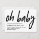 Modelo de convite para chás de fraldas neutro em termos de gênero num estilo simples e moderno. Ele diz "oh baby" em fontes de tendência grande na frente com a informação do chá de fraldas colocada perfeitamente no canto inferior esquerdo. A parte traseira da placa tem cinza e verificação de gingham branco. Para meninas e meninos.