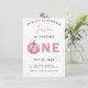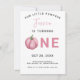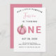 Cartão de convite de aniversário bonito com ilustração de aquarela de PINK PUMPKIN. O texto diz "NOSSA PEQUENA PUMPKIN".
