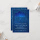 Tema de chá de aspersão para bebês, com cores aquáticas, com gotas de chuva espumantes a cair em tons de marinho profundo e azul de cobalto sobre fundo de cor azul-escura pintada manualmente. Personalize facilmente o modelo com seus detalhes em um script limpo e clássico. Para personalizações ou outras cores, visite o justFharryn ou contate o designer c/o fharryn@yahoo.com #zazzlemade