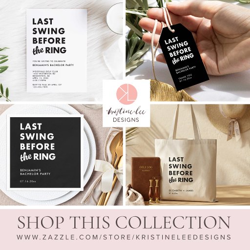 Kick off the celebration with this bold and modern “Last Swing Before the Ring” bachelor party invitation, featuring clean typography and a sporty golf-inspired design. Perfect for golf outings, weekend trips, or laid-back bachelor parties, it sets the tone for a fun and memorable event. Easily customize all the details to match your plans.
