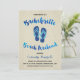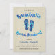 Uma festa de solteira bonita convida para um fim de semana na praia, com bonito caligrafia azul-aquática, sandálias de falso azul e um fundo de grãos de madeira castanho-claro.