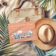 Cena de rua Iconic art deco de Miami Beach Flórida para um fim de semana de despedida de solteira na praia. Todo o texto é editável para o local da praia ou evento temático. Fundo de cor personalizado na frente e atrás. Perfeito para los angeles também