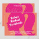 Este divertido convite para solteiros, feito em fofoca e laranja, é acentuado com uma silhueta rosa brilhante de uma garota com rabo de pônei, fazer perfeito para um Partido de Barbiecore! Há muito espaço nas costas para detalhes e informações sobre o fim de semana fora. Se forem necessários elementos de coordenação adicionais, contacte-nos com o seu pedido em prettyfancyinvites@gmail.com.