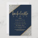 Um elegante, moderno, ouro e prata inclui um design de brilho geométrico de prata, com tipografia escrita à mão em ouro falso, impressa, sobre fundo azul marinho. Esta Festa de solteira de casamento de glam é a impressão perfeita para qualquer evento de casamento de noiva e noiva. Personalize este design com seus detalhes e monograma inicial.
