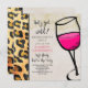 Convite de festas para uma festa de solteira com uma impressão animal selvagem e um copo de vinho legal com um esboço preto grosso e cheio de vino rosa quente. Dourada brilha no topo do design. Personalize com suas informações de solteiro em um fundo de estilo de pergaminho brando. O vamos fica selvagem, e o último fling antes do anel escrito em uma fonte de tendência legal.