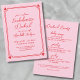 Convite simples e doce para Festas de solteira. Celebre a noiva para estar com este charmoso e versátil convite à solteira, perfeito para qualquer tema, destino ou época do ano. O design apresenta um fundo rosa feliz em ambos os lados, complementado por fontes vermelhas e uma delicada estrutura de linhas de rabisco com corações em todos os quatro cantos na frente, acrescentando um toque lúdico e romântico. A frente o mantém simples e na moda com espaço para os detalhes do seu partido na frente e no centro, garantindo que o foco permaneça na celebração. O verso tem um layout limpo e minimalista com texto simples, fazer fácil de incluir detalhes adicionais ou deixá-lo maneiro e subestimado. Este convite funciona lindamente para festas de solteira de todos os tipos, desde destino até noites íntimas. Totalmente personalizável, você pode ajustar o texto de acordo com o seu evento. Disponível como cartão impresso ou arquivo digital descarregável, é uma escolha alegre e eterno reunir todos para a celebração especial da noiva.