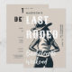 Um último convite elegante de despedida de solteira rodeada com um tema de vintagem retrô, com uma ilustração ao estilo poster de uma bela mulher vestindo um chapéu, em uma pose suja, com um esquema de cores preto e branco. Um convite de festas divertido de fim de semana de uma noiva que adora retro e vintage.