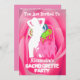 Bacheloretes fascinantes personalizados com design brilhante e bonito rancho cor-de-rosa brilhante, pastel, legal e moderno baile gráfico num fundo cor-de-rosa escura, facilmente personalizado com o nome das noivas aos modelos de texto branco para criar seu único design moderno para celebrar sua solteira especial divertida ou garotas de festa de galinha ou senhoras de noite ao estilo. Esta legal design pode ser facilmente personalizada para qualquer outra ocasião ou evento especial de celebrações entre garotas.