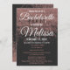 Glamorosa, chic e elegante faux imprimiram brilho rosa dourado brilhante em convites Festas de solteira pretos. Este design clássico e sofisticado é perfeito para a classe, a moda e a na moda. Personalize com sua própria mensagem na frente e um monograma personalizado na parte de trás. Todas as impressão de fotos.