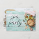 Bachelorette spa party invitation for women. The front of this template has a pretty printed image of spa accessories on a blue wooden background and the reverse has a tower of spa massage stones on a plain white background with your event details. All text, font and font coloyr is fully customisable to meet your requirements. If you would like help with your product please contact me through my store and i will be very happy to help you.and your event title