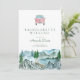 Bachelorette Weekend no Woods Invitation apresenta lago de aquarela na montanha e van com fonte de script para o nome da noiva a ser. É perfeito para fins de semana de chaleira, floresta ou lago.