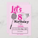 Celebre com estilo com este convite de aniversário temático de badminton! Com um fundo rosa claro, raquetes e volantes, é perfeito para uma celebração esportiva. Personalize com seus detalhes e faça do seu evento inesquecível!