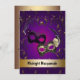 Mascarada convite de festas com belas máscaras Mardi Gras mascarada ou convites para dança de regresso a casa. Este belo convite de festas roxo e mascarada dourado é facilmente personalizado para o seu evento simplesmente adicionando os seus detalhes à frente e atrás no estilo de fonte, cor e texto da sua escolha.