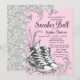 Convite de baile de tênis rosa com tênis de diamantes bonitos e diamantes em um fundo de redemoinho prateado. Este convite de baile de tênis rosa é perfeito para festa de aniversário de baile de tênis e é facilmente personalizado para o seu evento, basta adicionar seus detalhes. Você pode alterar as cores do texto, a cor do fundo e os estilos de fonte.