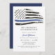 Este convite de festas de aposentadoria apresenta uma cor d'água angustiada bandeira azul fina e uma simples design neutra. Este convite pode ser usado para comemorar os primeiros socorristas da polícia, assim como o pessoal do marinho ou da força aérea.