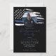 Este convite de festas de aposentadoria apresenta uma cor d'água angustiada bandeira azul fina e uma simples design neutra. Este convite pode ser usado para comemorar os primeiros socorristas da polícia, assim como o pessoal do marinho ou da força aérea. Adicione uma foto ao fundo para um toque pessoal.