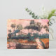 Adicione um pouco de arte de pesca aos seus convites de aniversário. Esta é uma reprodução de um trabalho de arte de aquarela Homer mostrando um baixo preto saltando da água com palmas à distância.