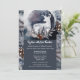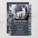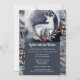 Um na moda e um design elegante sobre um fundo azul de ardósia muito escuro apresentando a bela silhueta de aquarela de um veado majestoso em frente a uma lua de cheio escura e emoldurado por folhagem e folhas de amora azul e castanha. Ele é bordado em cada borda por pinheiros cones e folhas de abetos. Se você se casar no inverno, tenha uma terra maravilhosa de inverno, queda rústica | Casamento no outono ou no tema florestal, esta ilustração é perfeita para as suas necessidades.