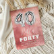 Diga adeus aos aborrecidos convites de aniversário e olá para uma comemoração moderna e vibrante! O nosso quadragésimo convite de aniversário apresenta um espantoso fundo cor-de-água rosa, um cintilante confete de bolhas transparente e brilhante, e um ousado balão de 40 hélio, número prateado. O nome do convidado de honra é escrito elegantemente em uma bela caligrafia branca, com um modelo de aniversário personalizável abaixo para sua conveniência. Prepare-se para lançar o grande evento em estilo com este convite atraente.