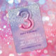 Convites Balão de aniversário de 3 anos rosa e roxo