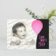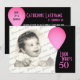 Balão de aniversário cor-de-rosa, 50 anos de convite com foto. Personalizar texto para qualquer idade.