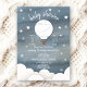 Um convite de chá de fraldas com uma cor azul-escura inspirado em fundo com texto branco cercado por estrelas e ilustrações de balão e nuvens de ar quente branco. Personalize com detalhes da sua ocasião.