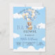 Convite ao chá de fraldas com urso no Balão de Ar Quente com balões azuis e brancos