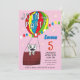 Convites Balão de Ar Quente Rosa, Rosa, Aniversário