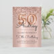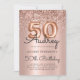 Convites Balão de brilho Dourado com Rosa de Sparkle 50º An