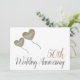 Convite de festa de aniversário de casamento de 50 anos moderno branco com balões de coração dourados.
