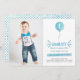 Este convite de aniversário de querido é perfeito para um primeiro aniversário (ou qualquer um depois disso). Elementos como um pequeno balão azul giro, texto moderno lendo "HOORAY" e pop azul/aqua são todos feitos em aquarela. Fácil de personalizar com suas próprias fotos e informações de festas! Simples e tão doce! A parte traseira da placa apresenta pontos aqua e azuis.