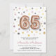 rosa de ouro moderno, convite de aniversário de balão 65. Design com o número 65 em forma de balão de ouro rosa, confetti e detalhes da festa na frente. Cor sólida da cinza escura na parte de trás. Para editar este modelo, clique em personalizar mais.