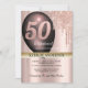 Convites Balão de Lâmpada Dourada Rosa preto 50.o aniversár