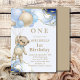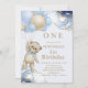 Convites Balão de Urso Vermelho Abstrato Azul Dourado